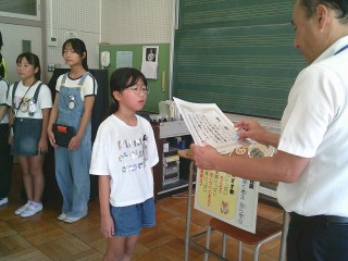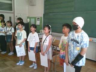夏休みが終わり、今日から子どもたちが学校に帰ってきました。暑い日となったため、各教室でリモート朝礼を行いました。理科作品展の表彰や防災週間についてのお話がありました。