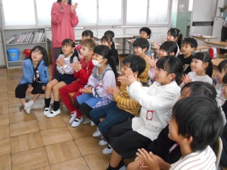 美和図書館ボランティア、「ぐーちょきぱー」からお二人いらっしゃいました。絵本に対する子どもたちの反応がとてもよく、盛り上がっていました。