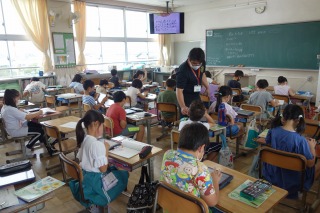 3年2組の理科は、『花がさいたよ』の学習でした。タブレットを使って、観察記録を確認し合いました。