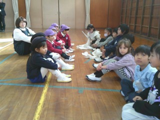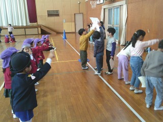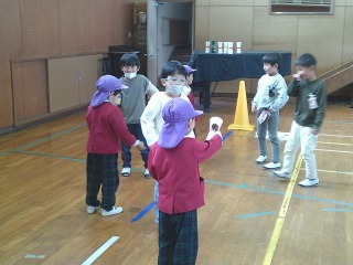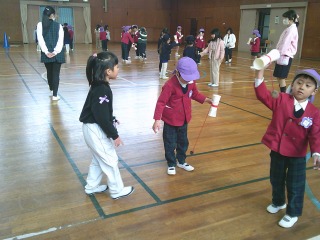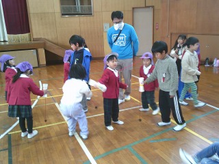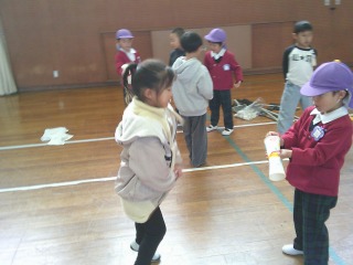 後半は手作りのけん玉を使って一緒に遊びました。4月の入学式に安心して美和小へ来れるといいです。