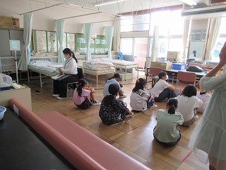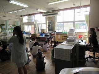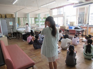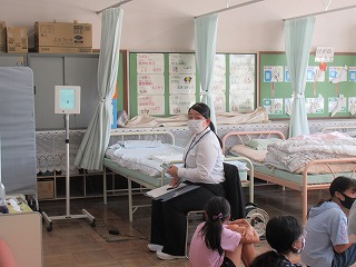 女子の視力検査を行っています。とても静かで、スムーズに検査が行われています。