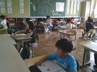 2年1組はテストの時間でした。勉強した成果を発揮できることを期待しています。