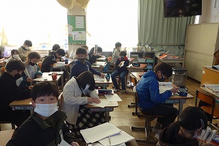 6年2組の学級活動は、職業講話の振り返りなどをプリントに書きました。