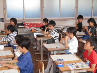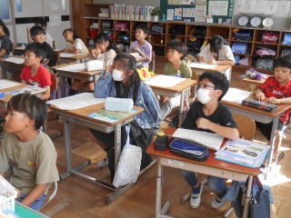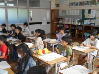 読書感想画に取り組んでいました。人間の描き方について、どう描くとよいか一緒に考えていました。