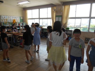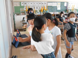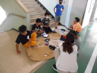 野外活動に向け、スタンツの練習をしていました。曲の編集をタブレットで行ったり、振り付けを考えたり、役割分担がきちんとされていました。