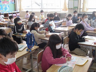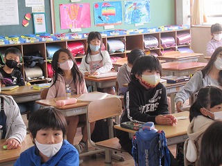 2年2組では、明日の連絡を担任の先生に聞いているところでした。天気予報はあまりよくありません。雨だったら、晴れていたら、の確認をしていました。