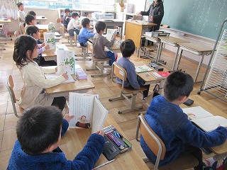 1年1組は、国語の時間でした。教科書の音読をしていましたが、登場人物の気持ちを考えることで、読み方が変化していくのがよくわかりました。