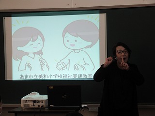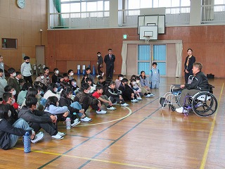 本日4・5・6年生を対象に福祉実践教室を行いました。4年生は手話、5年生は車いす体験、6年生は視覚障害ガイドヘルプと高齢者疑似体験を行いました。