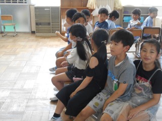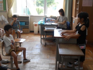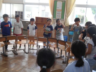 代表の子が司会をして、いす取りゲームが始まりました。音楽に合わせてぐるぐる回り、音楽が止まると「わー!」と座り始めました。