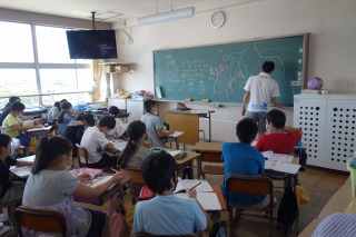 5年2組の社会は、水産業の学習でした。大陸棚の話などを聞きました。