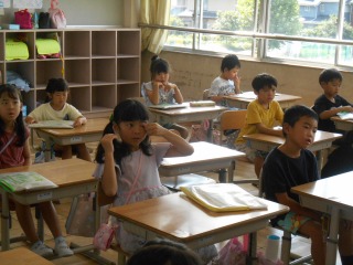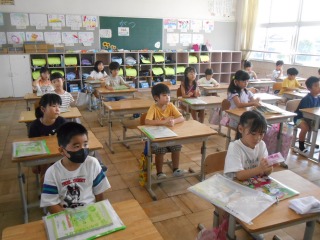 9月以降に使う教科書を配付するところでした。持ち帰り、名前を書くのを忘れずに。