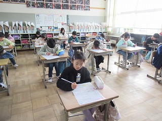 3年1組では、算数の時間テストを行っていました。