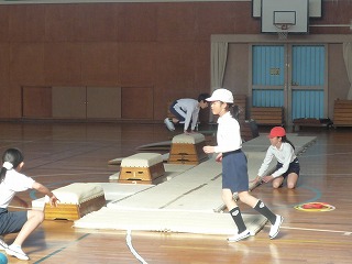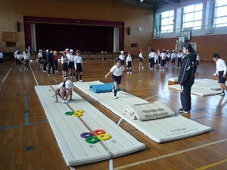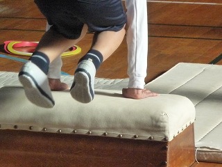 跳び箱運動の抱え込み跳びのチャレンジです。