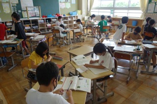 4年2組の国語は、新聞づくりの学習でした。グループになって、仲間と相談しながら内容を考えました。