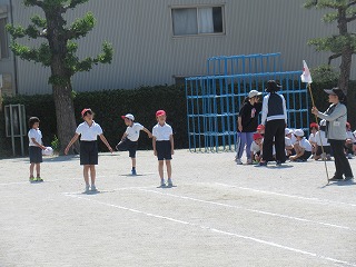 1・3年生が、運動場で体力テストを行っていました。全力でがんばっている姿が見られました。