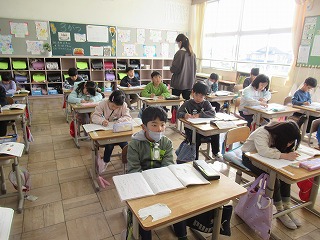 1年2組では、国語の授業が進められていました。みんな丁寧にな文字を書いていました。