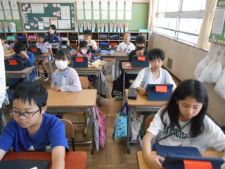 クラブの希望を取っていました。先生の説明を改めて聞き、どのクラブを希望するか、タブレットで入力していました。