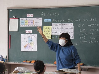 5年1組では、算数の授業が行われていました。割合のグラフについての学習でした。