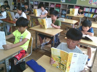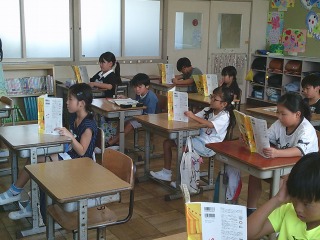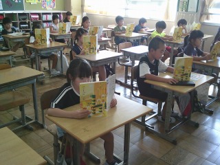 テストが終わり、「どうぶつのじゅうい」の話を聞きながら内容を理解していました。