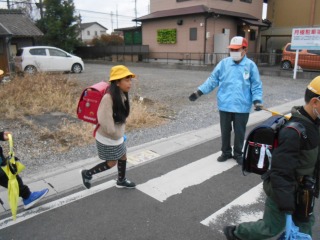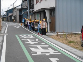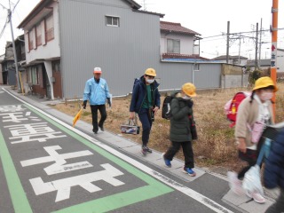 きれいに1列で並んで登校していました。挨拶も、ばっちりです。
