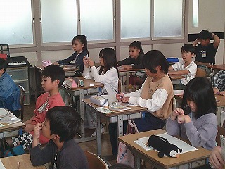 厚紙を使って、こまを作っていました。中心をどう決めるか、考えながら穴を空けていました。