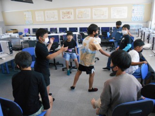 教室とコンピュータ室に分かれて、野外活動のスタンツの相談をしていました。どんな内容になるか、楽しみです。