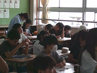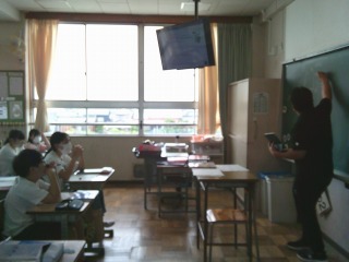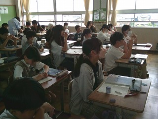 蛇口の水を水槽にどれだけの時間流すといっぱいになるか、文字を使った式で求めていました。