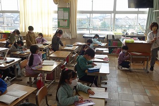 1年2組の国語は、「見つけたかん字をはっぴょうしよう」の学習でした。見つけた漢字をお互いに伝え合いました。