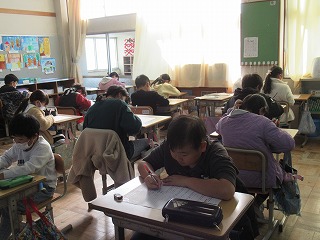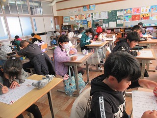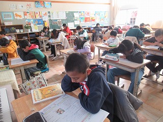 4年2組では、国語の時間、テストを行っていました。みんな真剣に問題に取り組んでいました。