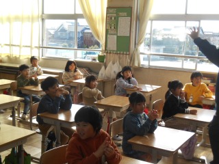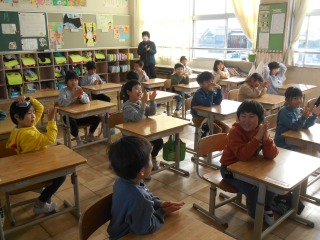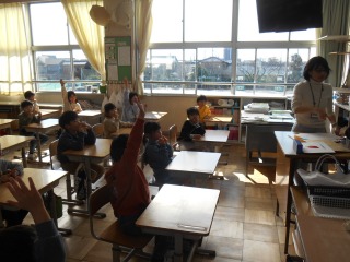 クイズに答えようと、たくさんの子が手を挙げていました。こちらも、楽しんでいました。