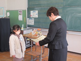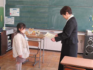 本日、表彰が行われました。1年生の子たちでしたが、しっかりした返事、受け取りができました。