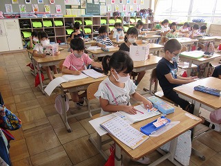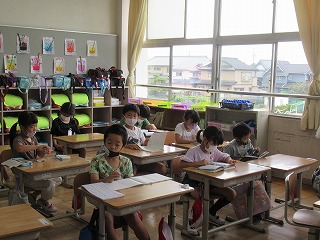 朝の教室のようすです。静かに落ち着いて、一日がスタートしていきます。