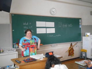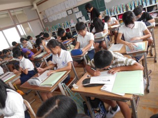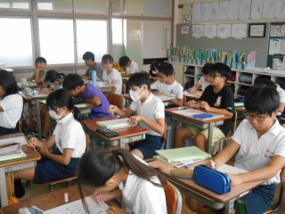 主語、動詞を確認しながら、与えられた単語を並べ替え、作文をしていました。ピリオドも忘れずに。