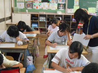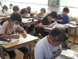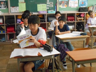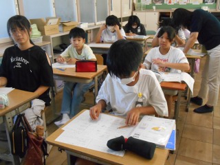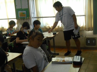 倍数や約数の復習をしていました。プリントの問題を解き、できた子から先生の確認です。