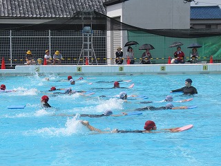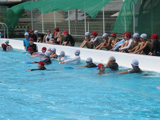 4年生が水泳の授業を行いました。暑い中、ボランティアさん方にも見守っていただいていました。ありがとうございます。