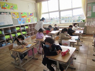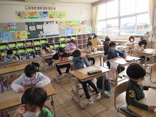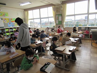 1年1組では、図画工作の時間、版画の下絵を描いていました。できあがりが楽しみですね。