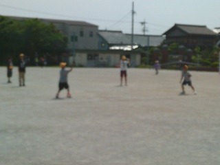 暑い日となり、放送で遊び方を工夫するように呼びかけました。それでも心配な先生が3名、運動場で遊ぶ様子を見ていました。みんな、走ることは避け、遊具やボール遊びをして、安全に休み時間を楽しんでいました。
