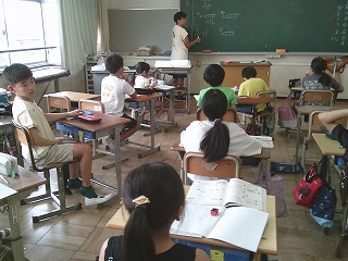 4年1組は算数の時間でした。割り算の筆算の計算方法について、学習を行っていました。計算ミスを減らせるように、落ち着いて計算しましょうね。