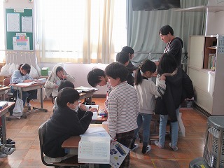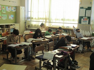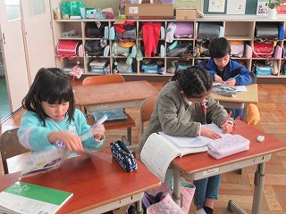 2年2組は国語の時間でした。言葉の広場に文章を書いて、その内容を担任の先生に確認してもらっていました。