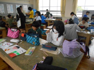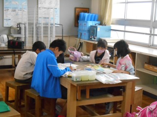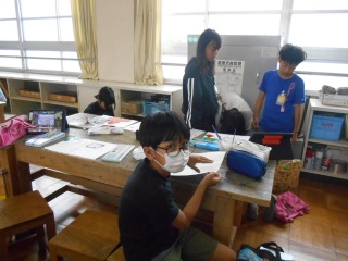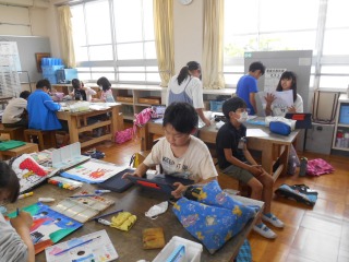 野外活動の思い出を、絵に表していました。絵の具で色を塗っている子もいました。同じ夜の空も、描く子によって全く色が違いました。