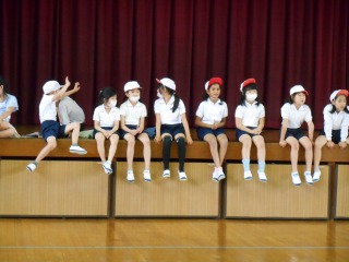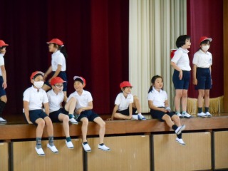 赤チームと白チームで、じゃんけんで勝った人から、舞台の上へ抜けます。舞台の上からは、大きな声援が飛んでいました。