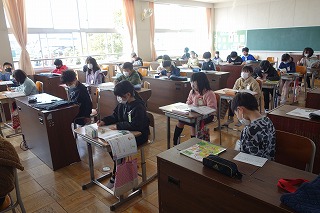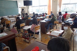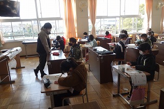 3年1組の音楽は、トランペットを使った曲の鑑賞をして感想をプリントに書きました。