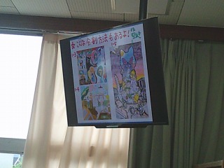 作品のレイアウトについて学習していました。何をどこへ配置するか考えながら作品づくりを進めていきます。見本の作品をモニタで見て、出来栄えに驚いているところでした。