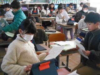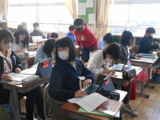 前の時間に作成した英文を使い、ペアで発表をしていました。