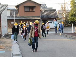 南門の通学班の登校の様子です。