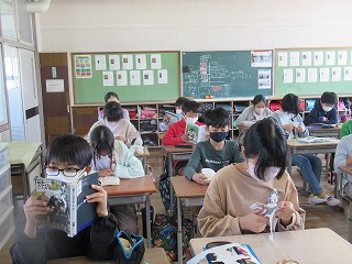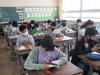 6年2組では、朝読書が静かに行われていました。