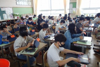 朝の教室では、朝の学習や朝の読書が落ち着いて行われていました。朝の学習ではタブレット端末を活用している学級もありましたね。