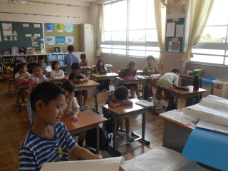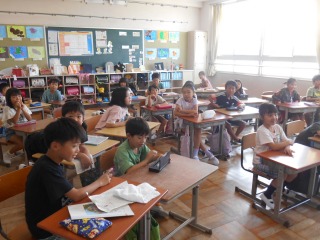 課題を提出しながら、今日の日程を確認していました。今日は給食がありませんが、明日の給食は何か、楽しみにしている子がいました。