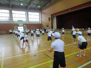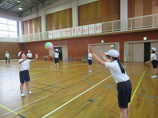 まずは、ボールをあつかう練習をしました。パスをする・キャッチする動作の基本を身につけることで、今後のゲームで生かせる技能を高めていきたいと思います。
