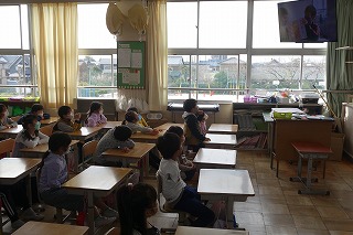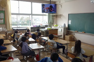 1年2組の学級活動は、図書委員の読み聞かせ動画を鑑賞しました。